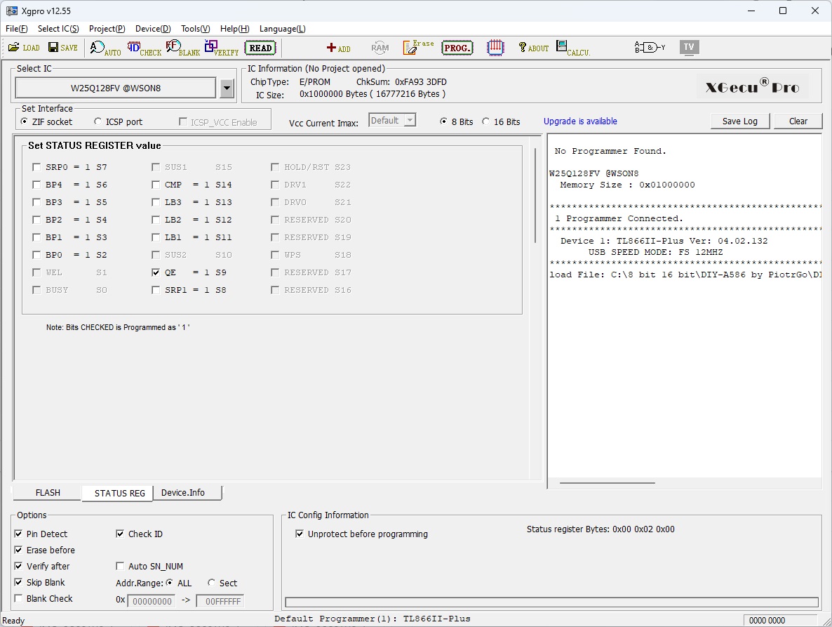 Program W25Q128 before soldering. Use file main.bin from folder v1.9\main. Remember to set fusebits: